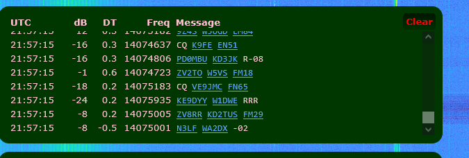 Voici quelques exemples d’affichage du WEBSDR en fonctionnement, dans les modes suivants : FT8, APRS et SSTV.