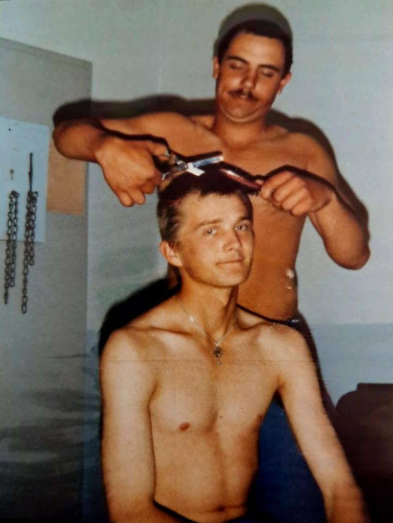 Les copains, c’est fait pour s’entraider, et pour nous, les trois mousquetaires de l’ECS/PREM, c’était naturel. Grâce à ça, nous évitions de passer chez les coiffeurs du régiment, qui avaient une fâcheuse tendance à la valse des tondeuses… ouppps ! Heureusement, notre copain Didier avait un vrai talent pour nous épargner la coupe bagnard. On n’a rien oublié, merci Didier.