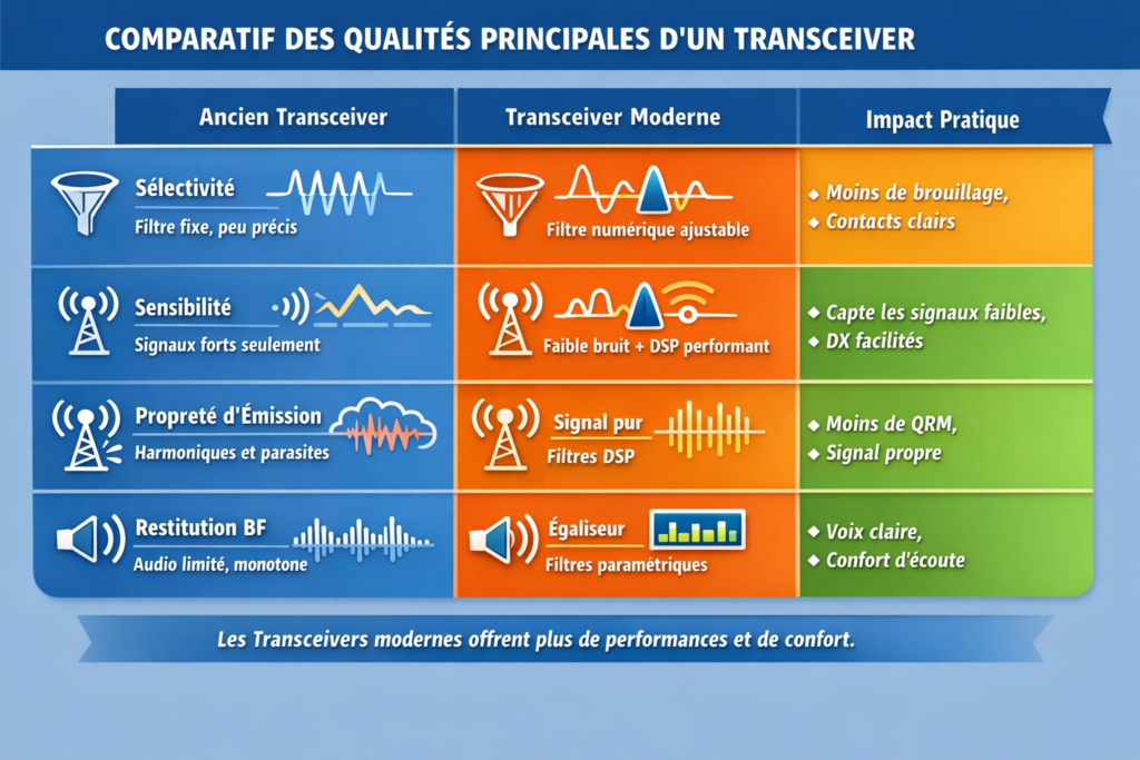 QualitéAncien transceiverTransceiver moderneImpact pratique